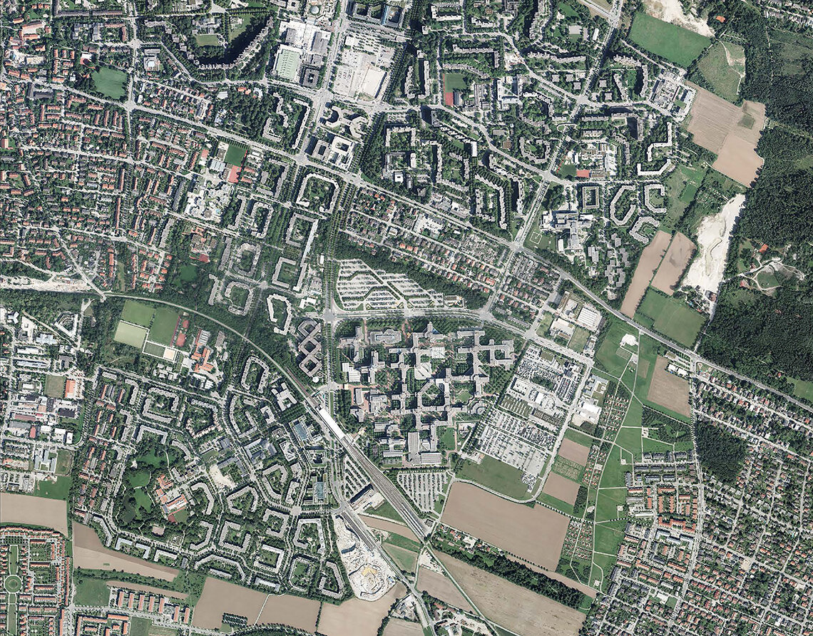 Luftbild Areal Neuperlach mit „Nordparkplatz“ in der Mitte © Landeshauptstadt München