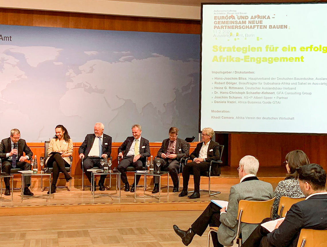 Zu Gast im Auswärtigen Amt: Am Dienstagmorgen trafen sich Vertreter verschiedener Bundesministerien und Institutionen mit Afrika-Expertise sowie exporterfahrene Bauunternehmen, um erfolgreiche Markstrategien in Afrika zu erörtern.