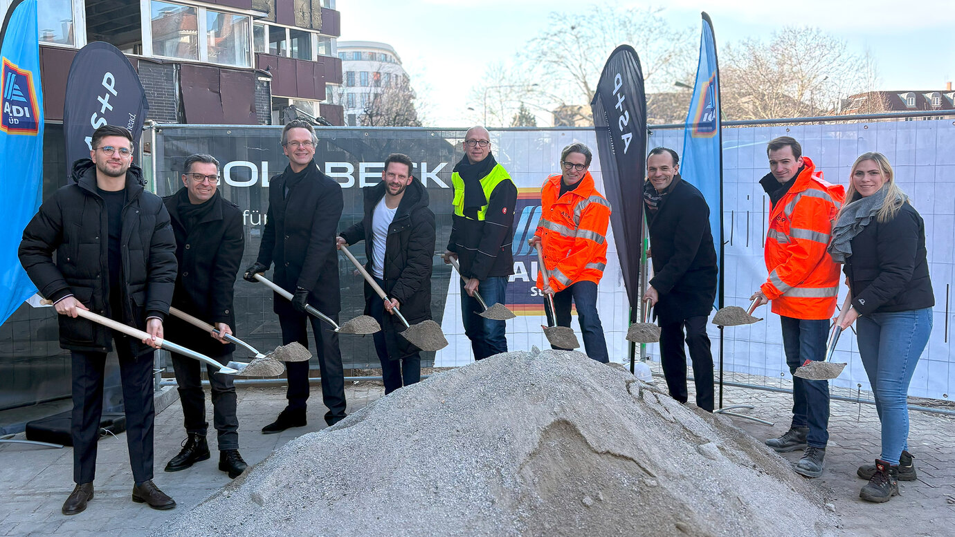 Spatenstich mit ALDI SÜD (Bauherr), AS+P Albert Speer + Partner GmbH (Generalplanung) und Goldbeck GmbH (Bauausführung)