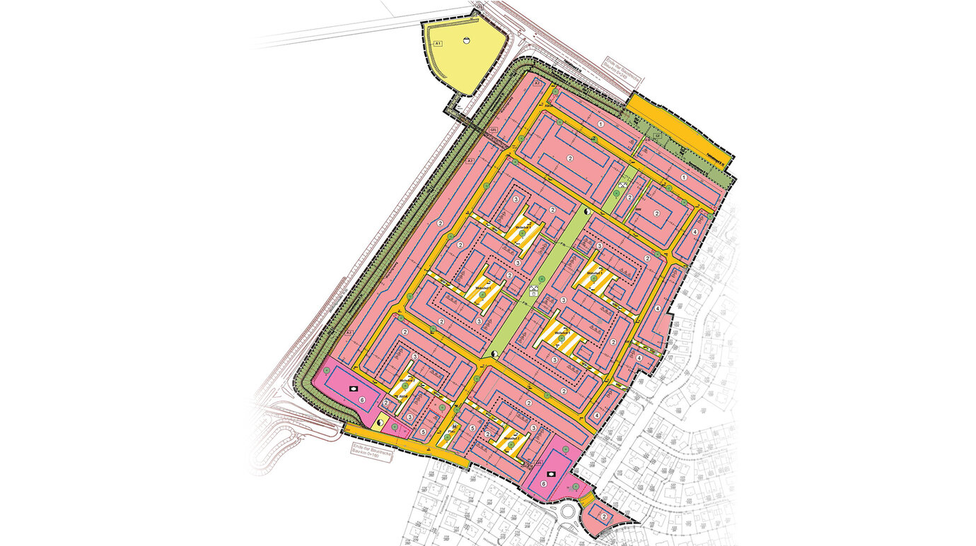Der Bebauungsplan von AS+P stellt die planungsrechtlichen Belange für das neue Wohngebiet sicher. Bei der Bearbeitung spielten aufgrund der umgebenden Infrastruktur die Berücksichtigung des Lärmschutzes eine wichtige Rolle. Plan © AS+P Albert Speer + Partner GmbH