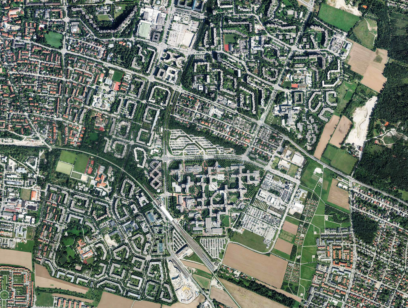 Luftbild des Planareals in Neuperlach mit „Nordparkplatz“ in der Mitte, Foto: © Landeshauptstadt München