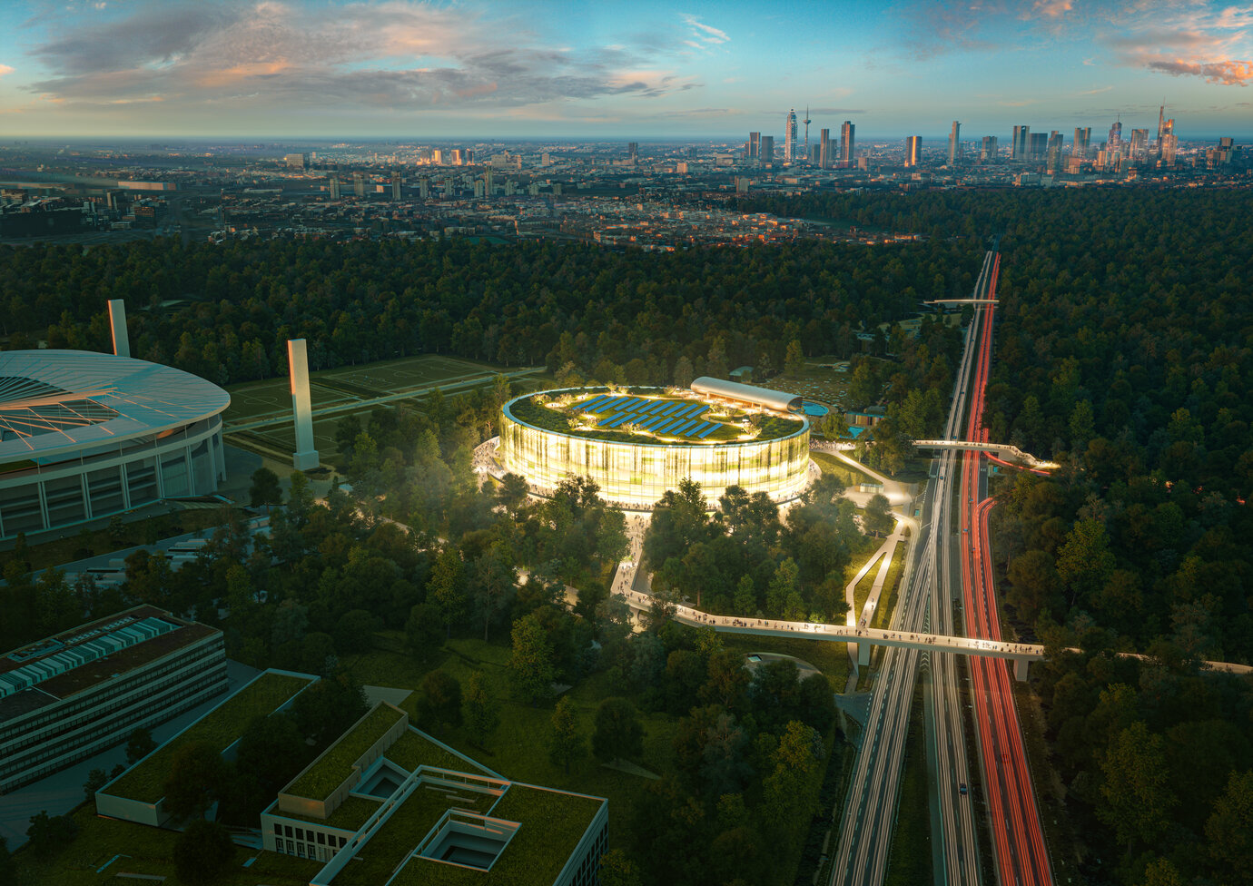 Eine Multifunktionsarena im direkten Umfeld des Frankfurter Waldstadions ist machbar. © AS+P Albert Speer + Partner GmbH | Visualisierung: HHVision