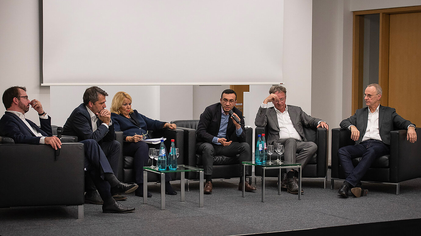 Die Akteure der Podiumsdiskussion (v. links): Dr. Matthias Alexander, Torsten Becker, Annegret Reinhardt-Lehmann, Mike Josef, Prof. Dr. Bernd Scholl und Dr. Michael Denkel © Roman Gerike, Meriag