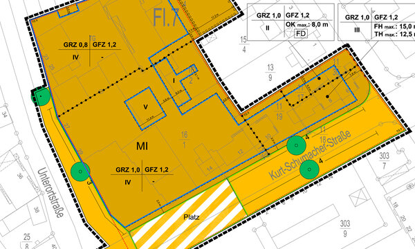 Bebauungsplan zur Entwicklung eines Wohnquartiers mit Einzelhandel und Sportanlagen