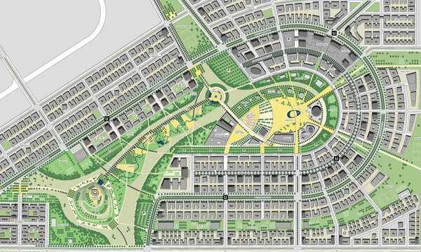 Erarbeitung von konkurrierenden Vorstellungen zur räumlichen Entwicklung, materiellen Lösungen und geeigneten planerischen Schwerpunktsetzungen für die Bereiche Siedlung, Verkehr und Freiraum