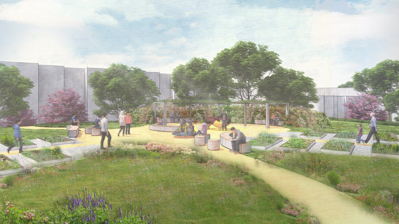 Zentraler Spiel- und Aufenthaltsbereich auf bestehendem Parkdeck