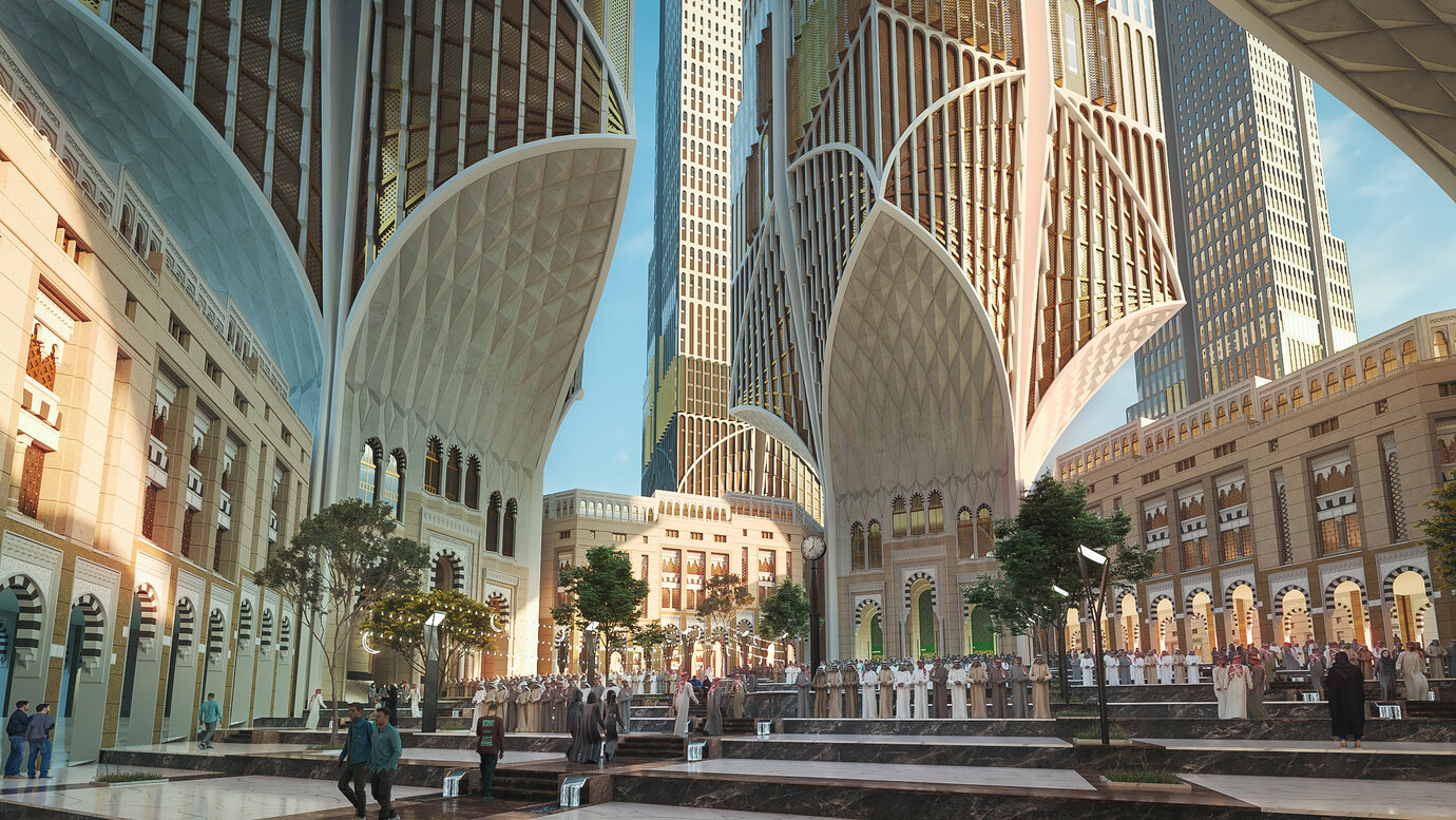 Der Masterplan vereint eine präzise abgestimmte Mobilitätsstrategie, intelligentes Besuchermanagement und leistungsfähige Infrastruktur, um selbst unter Extrembedingungen – insbesondere während Hadsch und Umrah – höchste Kapazität, Sicherheit und Aufenthaltsqualität zu gewährleisten. Architektonisch entsteht eine identitätsstiftende Erweiterung der Al-Masjid al-Haram, die die Baukultur Mekkas respektvoll weiterentwickelt und in eine zeitgemäße Form übersetzt. Tradition und Innovation verschmelzen zu einem Ort, der sowohl dem spirituellen Anspruch als auch den Anforderungen einer globalen, wachsenden Gemeinschaft gerecht wird.