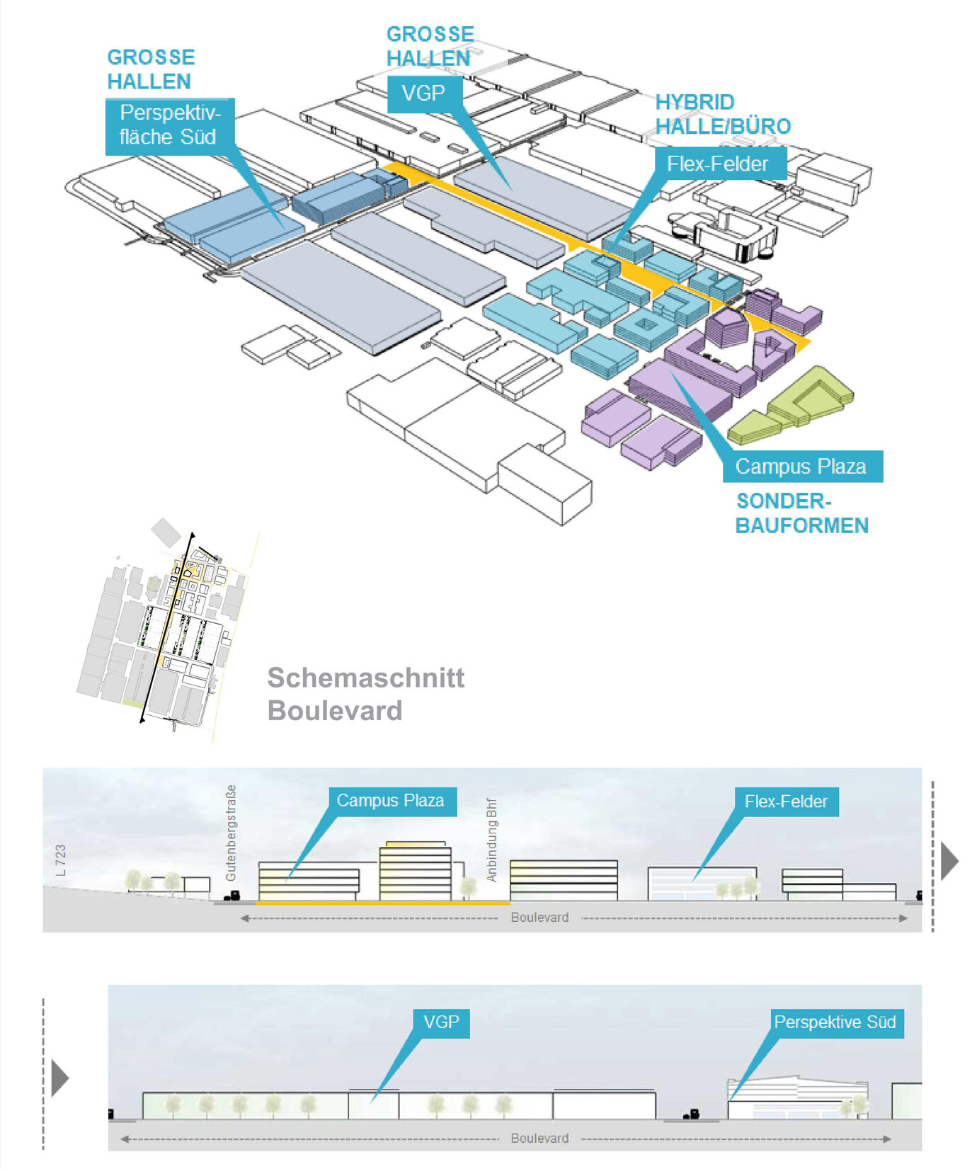 Volumenmodell und Schemaschnitt Boulevard