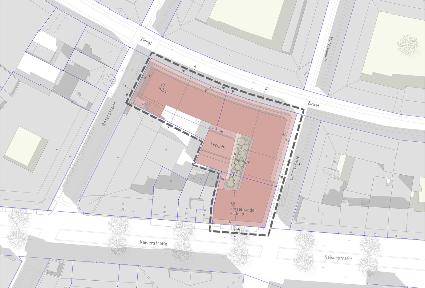 Vorhabenbezogener Bebauungsplan Ecke Kaiserstraße, Lammstraße, Zirkel, Ritterstraße