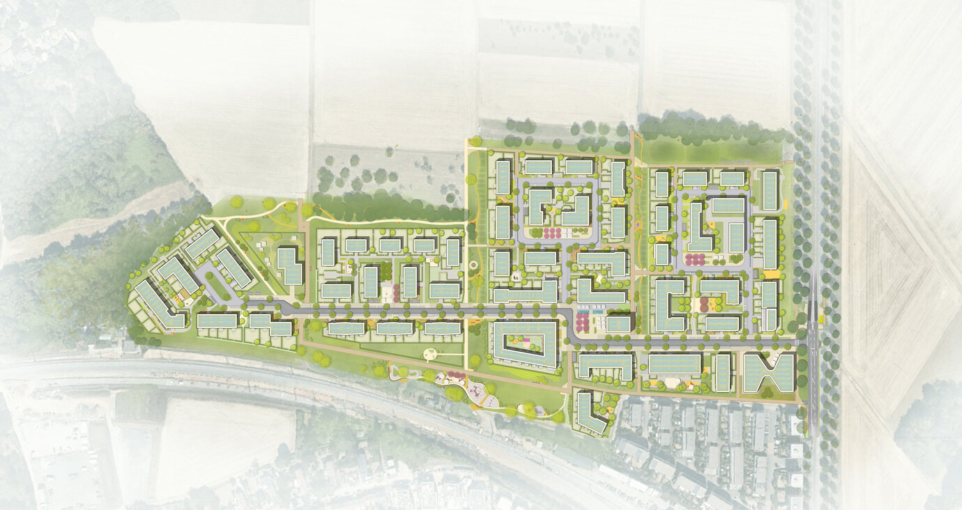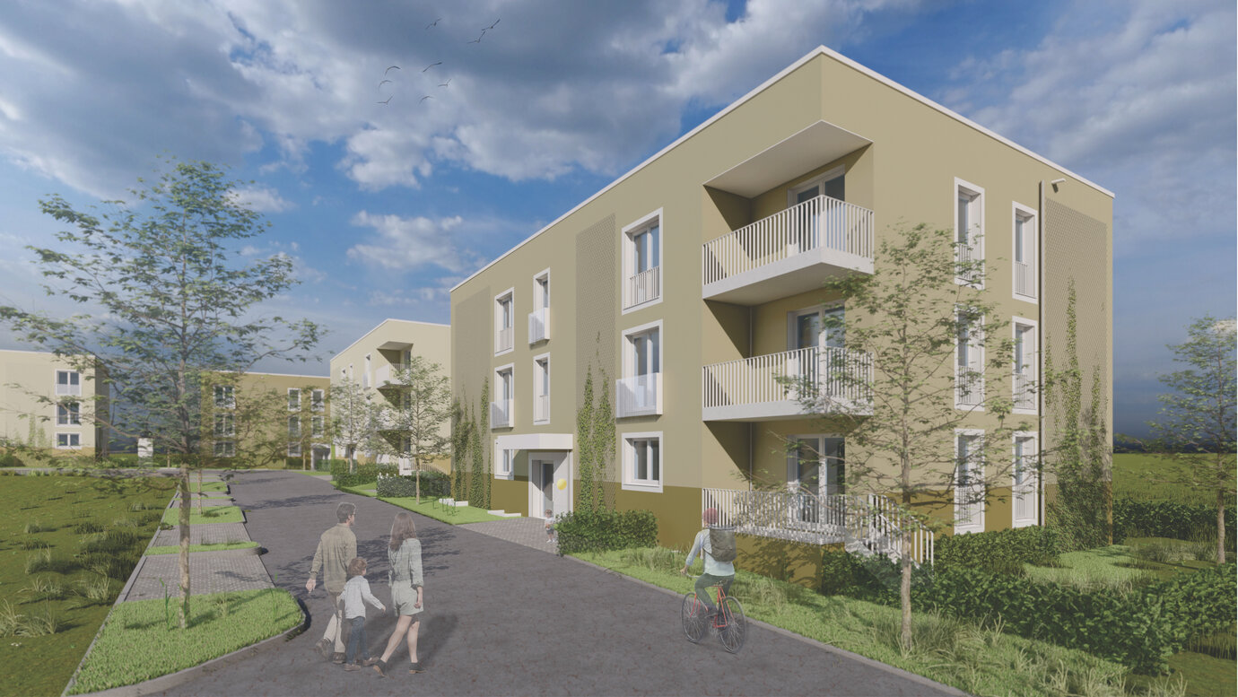 Ansicht der Baufelder A1 mit typischer Riegelbebauung